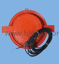 该产品由绕线盘、卷簧、簧室及机壳、测长线及相关安装附件组成。机壳内部由长度传感器、角度传感器、电气滑环总成、减速齿轮以及一个固定安装板组成。将该产品安装于伸缩臂侧面,测长线一端固定在该产品内,经过绕线盘后,另一端固定于伸缩臂头部,臂架伸缩的同时卷盘同步转动,根据旋转圈数及卷盘的半径可测定测长线被拖出长度,从而获得臂架伸缩的长度。一个带磁阻尼的钟摆式角度传感器,可以测量臂架与水平线夹角。经过数据电缆把长度角度信号传输到主机。